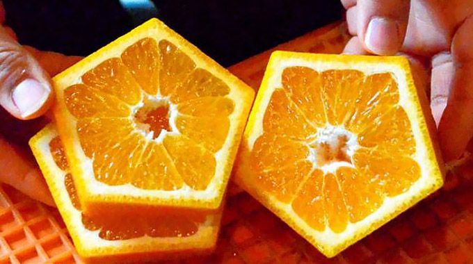 Маленькие апельсины они помещали в пятиугольные колодки и, вырастая, плод приобретал форму своей «тюрьмы».