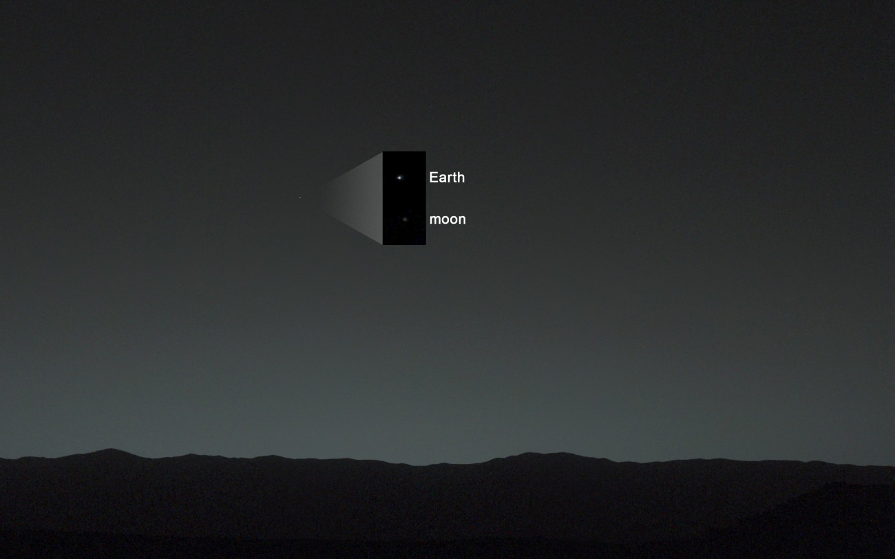 «Человек с нормальным зрением, стоя на Марсе, смог бы легко разглядеть Землю и Луну, как две четкие, яркие вечерние звезды», – пишет NASA в своем описании к этим снимкам.