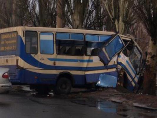 По данным пресс-службы ГАИ Донецкой области, в салоне автобуса в этот момент находились 25 пассажиров, трое из них травмированы - их госпитализировали с переломами ног.