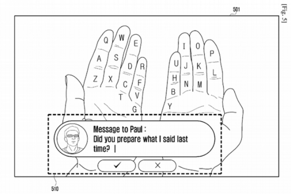 Компания Samsung предложила превратить ладони пользователей в клавиатуру для своих «умных очков». Пользователь через очки будет видеть виртуальные «клавиши», отображающиеся прямо на пальцах его рук.