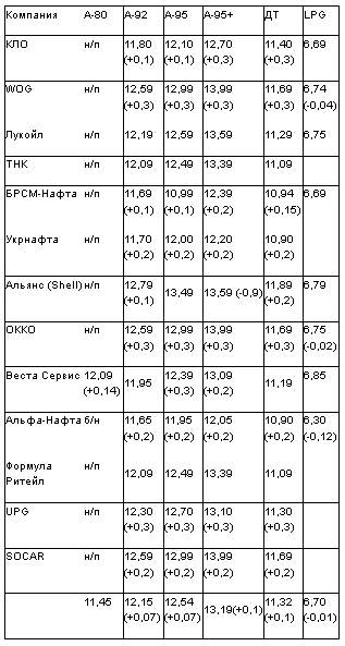 Розничные цены на бензин и дизельное топливо в Киеве 19 марта 2014 г. по сравнению с предыдущим торговым днем немного выросли.