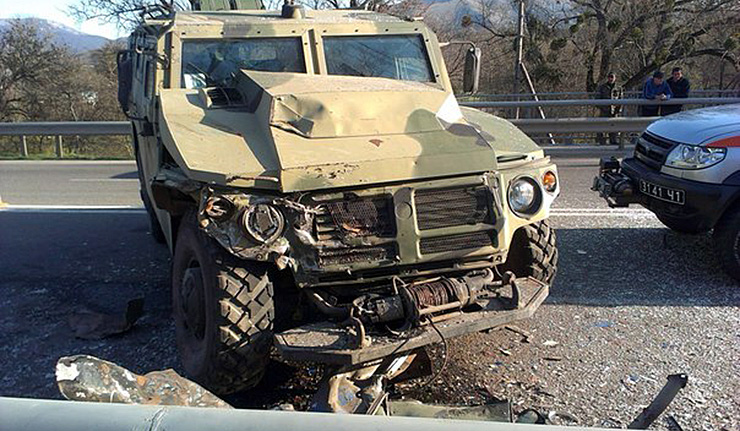 Российский военный бронеавтомобиль «Тигр» врезался в троллейбус. Авария произошла на трассе Симферополь-Ялта возле села Перевальное.