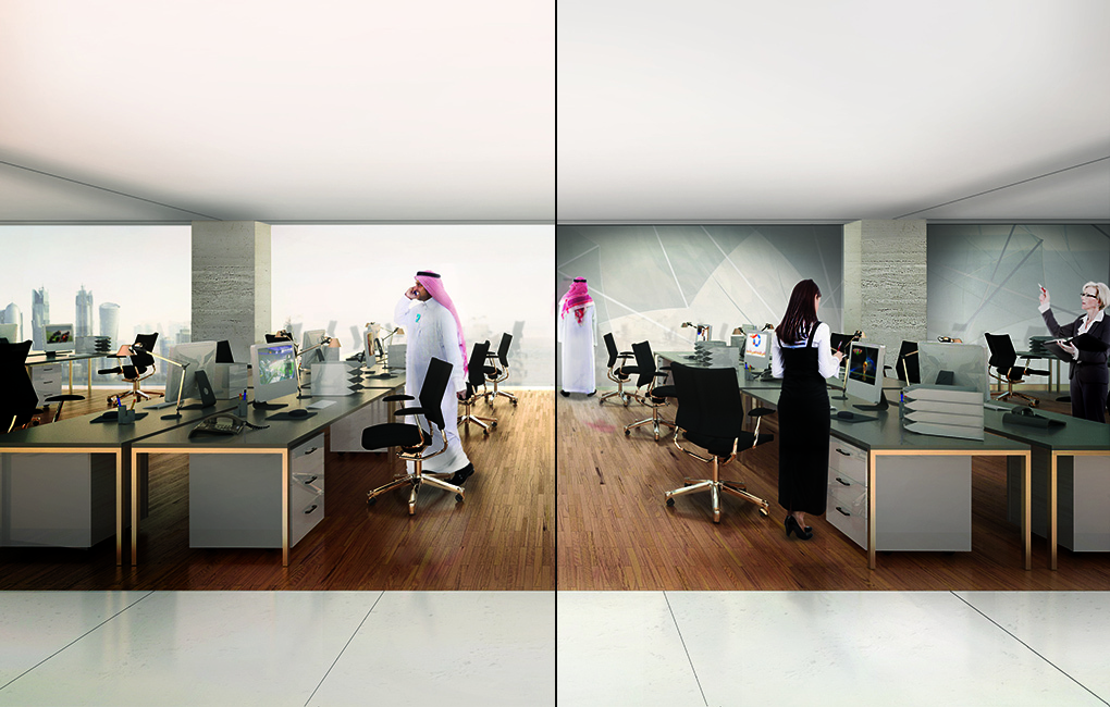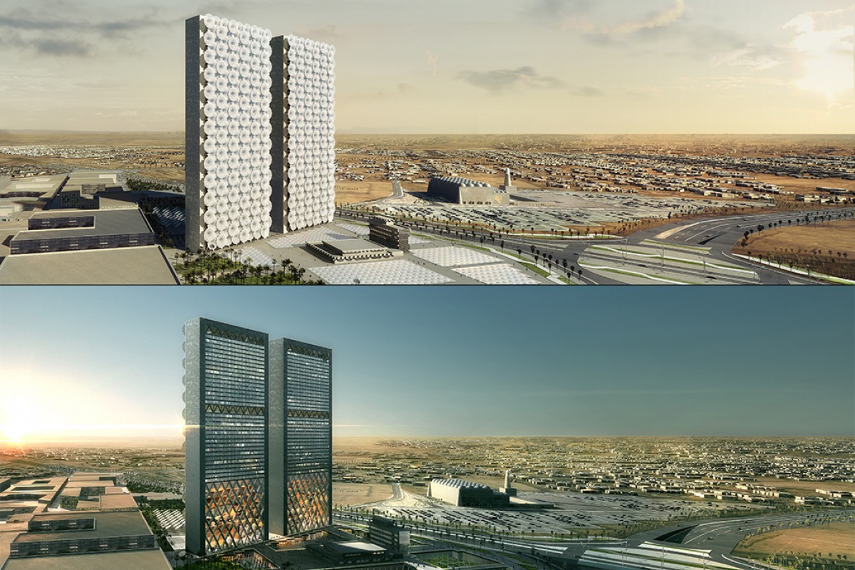 На конкурсе по проектированию новой штаб-квартиры неназванной арабской медиакомпании Нью-йоркское архитектурное бюро REX представило концепцию парных небоскребов, способных самостоятельно «закрываться» от прямых солнечных лучей.