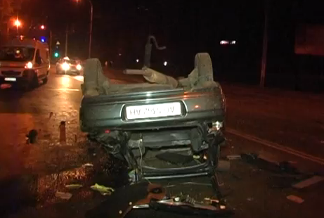 Вследствие сногсшибательной аварии машина потеряла ходовую часть и несколько раз перевернулась.