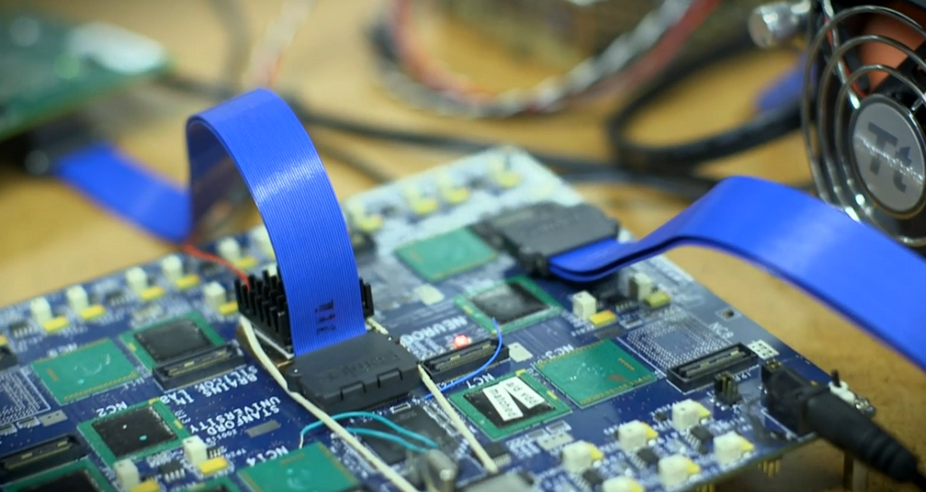 "Нейрорешетка" состоит из 16 чипов "Neurocore", которые в общей сложности могут симулировать работу миллиона нейронов и миллиарда синоптических связей.