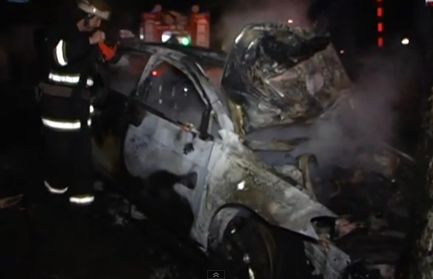 Через несколько минут на место происшествия прибыл дежурный подразделение 12- й Государственной пожарно - спасательной части. Огонь из машины распространился на дерево , поэтому не теряя времени , пожарные приступили к тушению . В 2:13 пожар был ликвидирован .