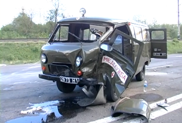В Киеве столкнулись УАЗ санитарной службы и Мерседес (ВИДЕО)