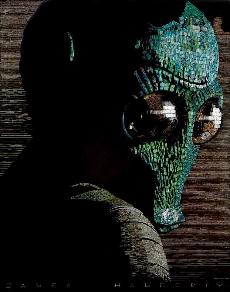 Джеймс использует десятки тысяч скоб разных цветов для того, чтобы воплотить своё видение, а заодно и удивить нас с вами. К примеру, не так давно он создал серию картин с персонажами культовой фантастической саги Star Wars.