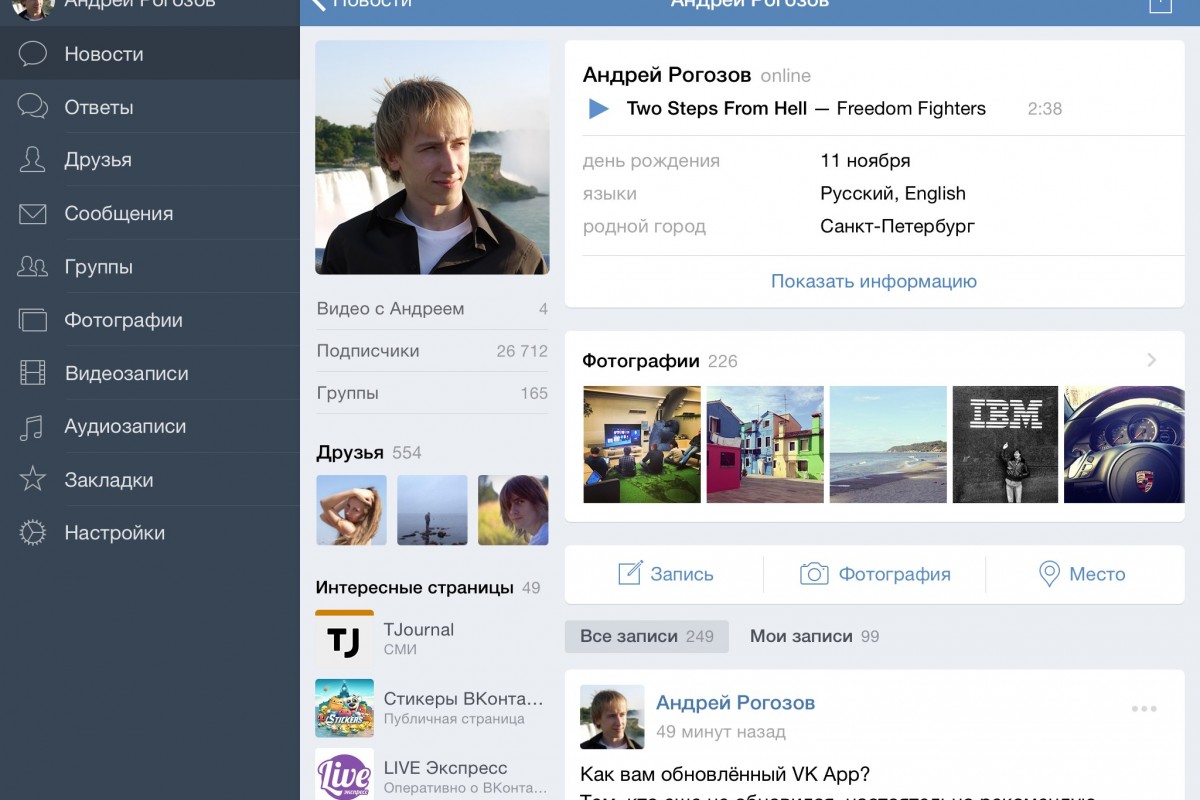 «ВКонтакте» анонсирует полностью обновленный дизайн клиента для iPad в стиле iOS 7
