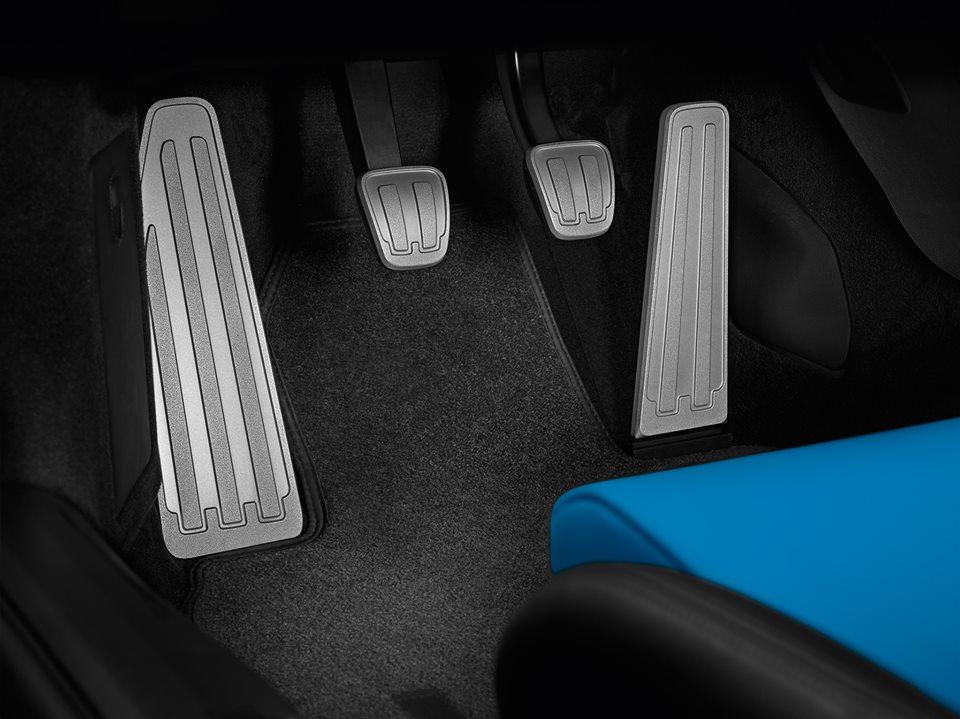 Двухцветный дизайн продолжается в салоне, модель получает черно-синие кожаные сидения, алюминиевую отделку, тиснение на подголовниках, серебристые ремни безопасности, алюминиевые педали и подсветку порогов.