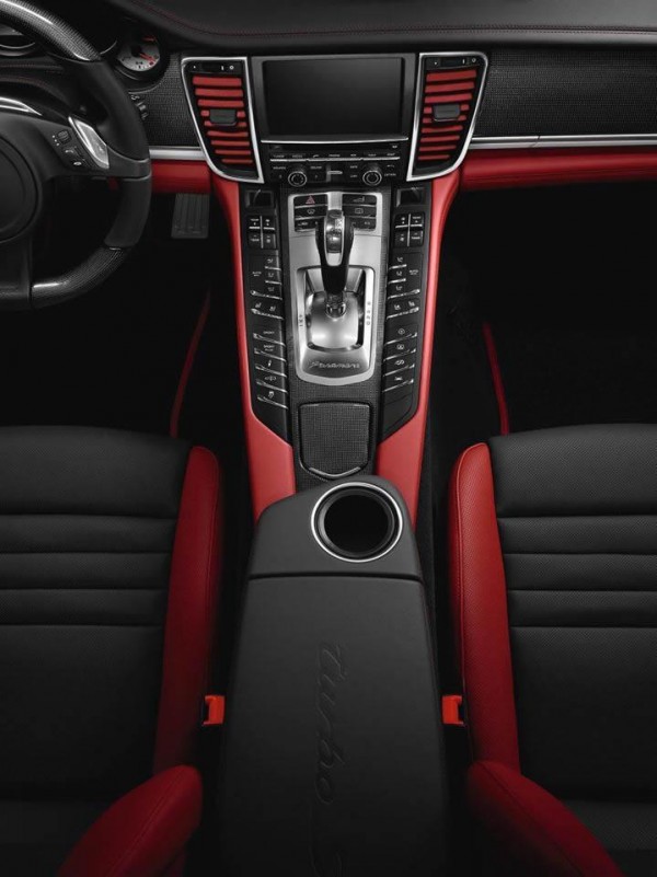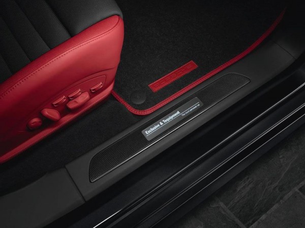Помимо эксклюзивной краски для кузова Panamera Turbo S получил 20-дюймовые глянцевые черные диски и систему динамического освещения PDLS+ (Porsche Dynamic Light System Plus). Сзади затемнили светодиодные фонари и сделали черными трубы выхлопной системы.