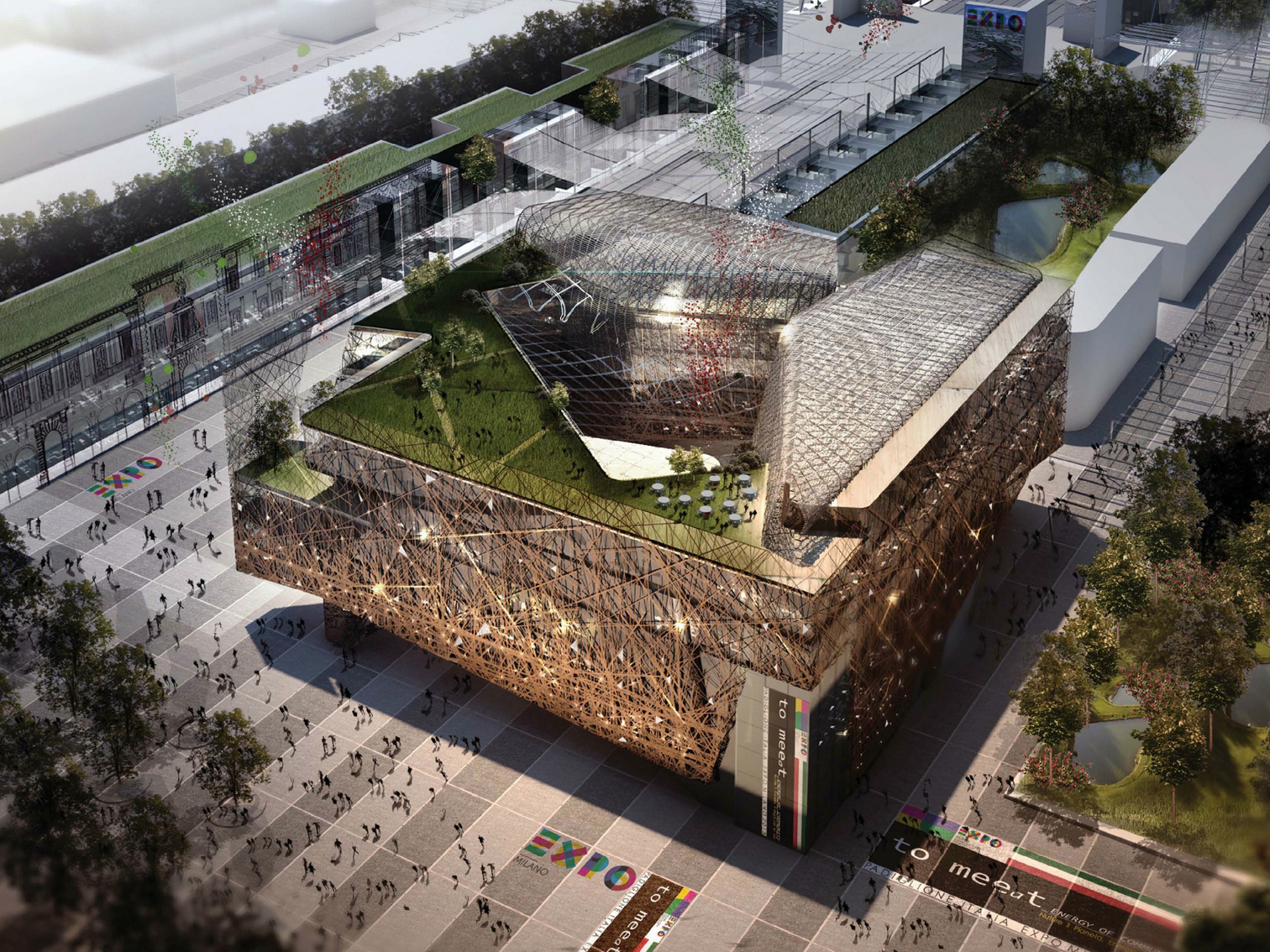 – Общая концепция проекта по архитектурному дизайну Italian Pavilion похожа на городской лес, в котором здание благодаря своему виду и объемной композиции приобретает черты архитектурного пейзажа. Ветви внешней облицовки Palazzo Italia также олицетворяют жизнь деревьев, передавая скрытый смысл проблемы исчезновения лесных ресурсов, – отмечает компания Nemesi & Partners.