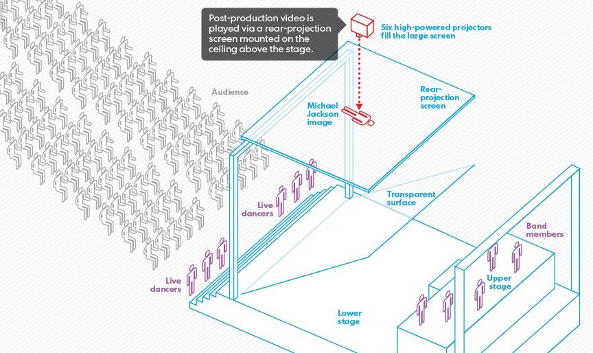 В ходе выступления Pulse использовала шесть подвесных высокомощных проекторов, которые направляли изображение Джексона на огромный, расположенный под углом в 45 градусов прозрачный экран. Для собравшихся в зале театра MGM Grand, расположенного в Лас-Вегасе, все это казалось настолько реальным, что некоторые подумали, что перед ними находится настоящий поп-король. Глубину иллюзии дополняли живые танцоры, располагавшиеся как на переднем, так и на заднем плане.