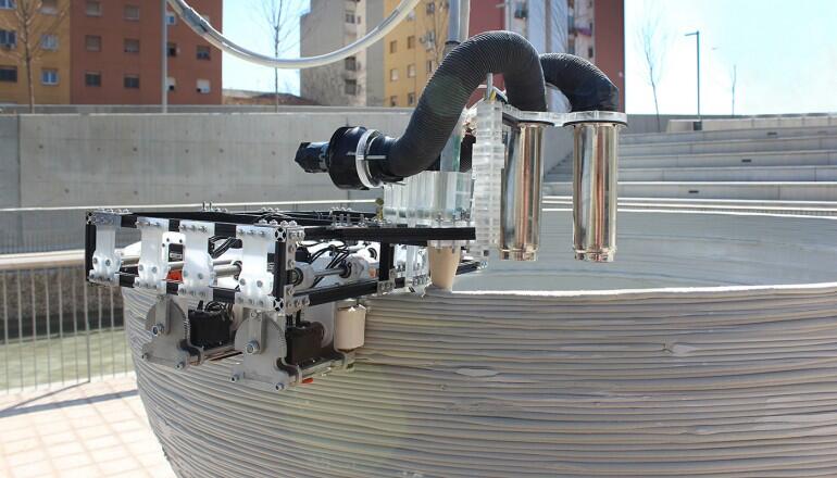 Мы уже неоднократно рассказывали о 3D-принтерах, с помощью которых можно строить целые дома. Однако во всех случаях процесс строительства состоял из двух этапов – печати отдельных строительных блоков, а затем сборка готового здания. Объединить эти два этапа удалось инженерам из Каталонского Института передовой архитектуры.