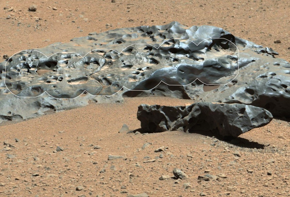 Новый 2-метровый (в ширину) метеорит не особо отличается от тех, которые были найдены в свое время предыдущим поколением марсоходов (Spirit и Opportunity). Фотографии, опубликованные минувшим днем, были сделаны в конце мая текущего года.