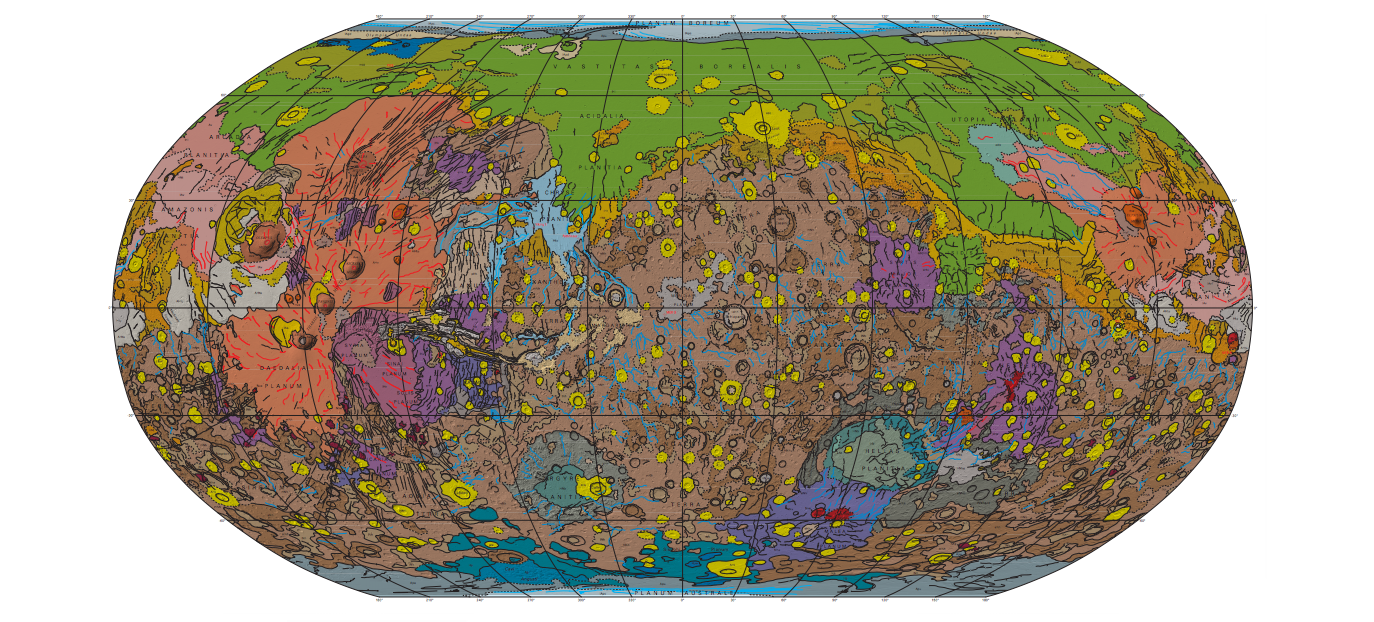 Карта включает в себя геологические объекты Марса, формы его ландшафта, выстроенные на основе морфологического, топографического, спектрального, термофизического и ультразвукового анализа поверхности планеты.