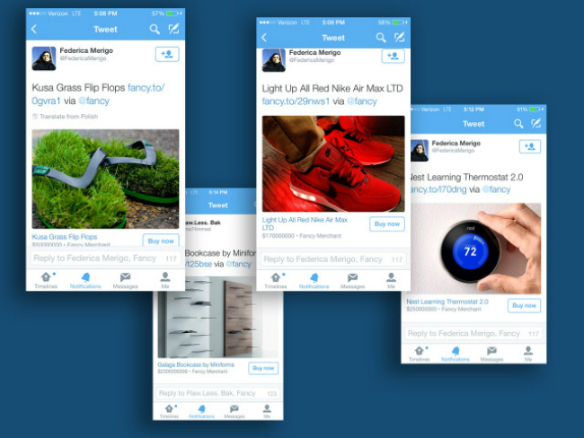 В июне пользователи Twitter заметили, что некоторые твиты публикуются с кнопкой «Buy now». Недавняя покупка молодого разработчика мобильных платежных приложений CardSpring также подтверждает интерес Twitter к онлайн-шопингу. Официальный запуск функции внутренних покупок ожидается ближе к сезону рождественских праздников.