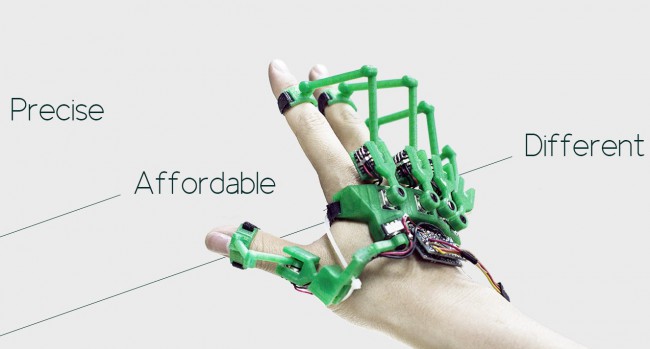 Компания Dextra Robotics работает над прототипом специальной перчатки-экзоскелета Dexmo F2, которая устроена таким образом, чтобы создавать определённое сопротивление движениям пальцев человека, если он прикасается к некоему виртуальному предмету. Специальные приводы крепятся к каждому из пяти пальцев руки, и как только перчатка получает от компьютера сигнал о том, что человек касается какой-либо поверхности, приводы начинают тянуть пальцы в обратную сторону. Разумеется, перчатка отслеживает мельчайшие движения ваших пальцев в пространстве и координирует их в соответствии с отображением вашей руки в виртуальной реальности.
