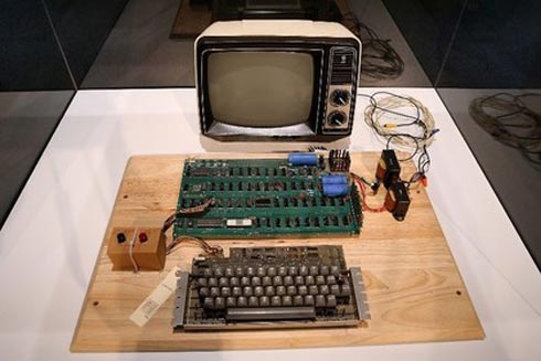Компьютер Apple 1 был создан Стивом Возняком в середине 1970-х годов. Вместе с будущим руководителем Apple Стивом Джобсом Возняк решил продавать компьютер, изначально созданный для личных целей. Первая партия из 50 компьютеров была собрана вручную в гараже Джобса. В общей сложности Возняк и Стив Джобс реализовали около двухсот компьютеров. До наших дней сохранилось 43 машины, при этом в полностью работоспособном состоянии находятся шесть (одна из них продана в Кельне).