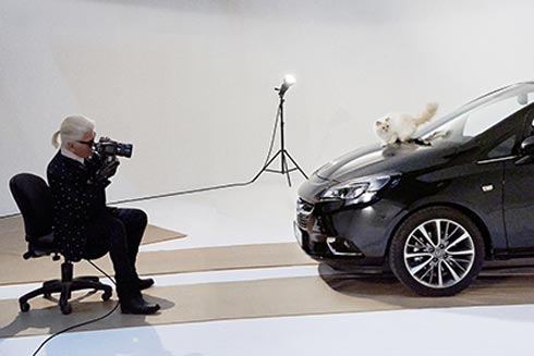Кошка дизайнера Карла Лагерфельда стала звездой календаря автобренда Opel на 2015 год. Животное прорекламировало новое поколение компактного автомобиля Opel Corsa. На снимках любимица кутюрье занимается исследованием интерьера и экстерьера транспортного средства.
