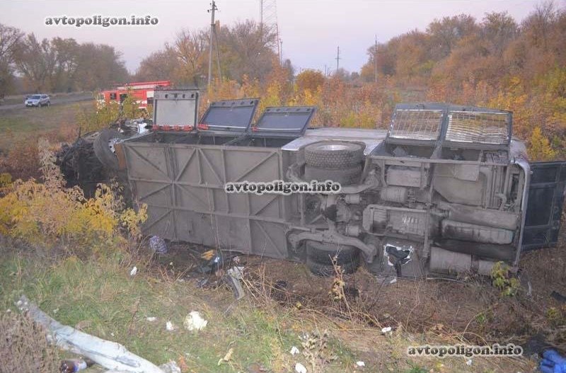 После столкновения автобус съехал в кювет и перевернулся. По предварительным данным, восемь человек погибли, 12 получили телесные повреждения. На месте происшествия работает следственно-оперативная группа, так же в район аварии выехал заместитель начальника ДГАИ МВД Украины Александр Ершов.