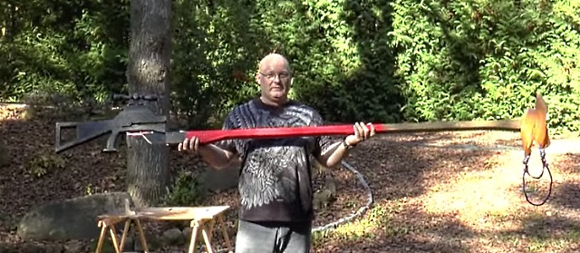 Гигантская рогатка JoergSprave. С ее помощью проверялась прочность Nokia 3310.