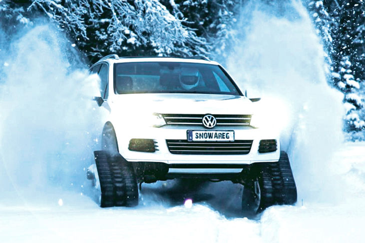 Шведское подразделение компании Volkswagen построило версию внедорожника Touareg на гусеничном ходу, которую назвали Snowareg.