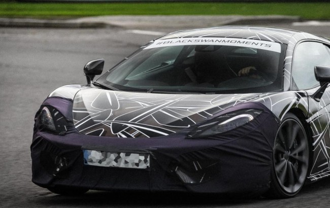 На снимке, предоставленном самим производителем, видно немного. Передний бампер и фары скрыты под плотным брезентом. Силуэт автомобиля такой же, как и представлялся нам на рендеринге. Компоновка шасси такая же, как на всех моделях компании – среднемоторная. Скорее всего, дизайн компактного суперкара вберет в себя черты от каждого представителя McLaren – снятого с производства MP4-12C, нового P1 и 650S. В качестве мотора будет использоваться 3,8-литровый агрегат мощностью 500 л.с.