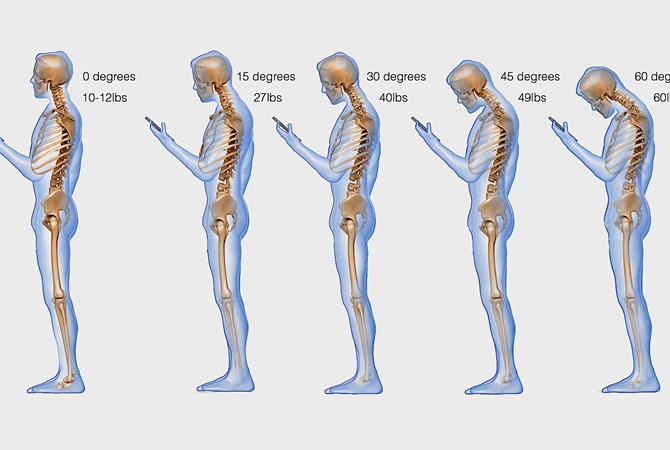 Согласно новому исследованию медиков, чтение с экрана смартфона или планшета может добавить до 27 дополнительных килограммов давления на позвоночник. Все зависит от угла между головой и гаджетом. Чем ниже наклонена вниз голова, тем больше давления оказывается на шею.