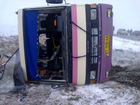На Херсонщине в перевернувшемся автобусе погибла 22-летняя девушка (ФОТО)