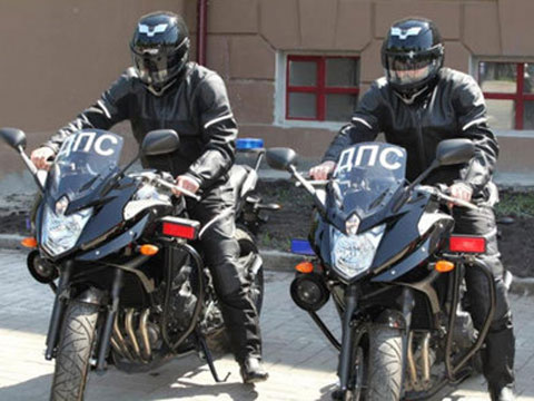 Один из правоохранителей, одетый в форменную одежду инспектора ГАИ, с огромной скоростью прокатился на мотоцикле, сидя на пассажирском месте.