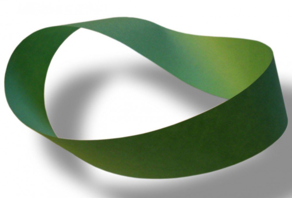 Чтобы сделать ленту Мёбиуса из бумажной полоски, достаточно перевернуть один из ее краев, а затем приклеить его к противоположному краю. Таким образом, попасть из одной точки этой полоски в любую другую можно не пересекая края. Поэтому с математической точки зрения такая полоска является одномерной поверхностью, вложенной в трехмерное Евклидово пространство.