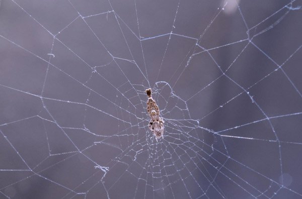 Паутинная нить, покрытая нановолокнами, вышедшими из крибеллюма