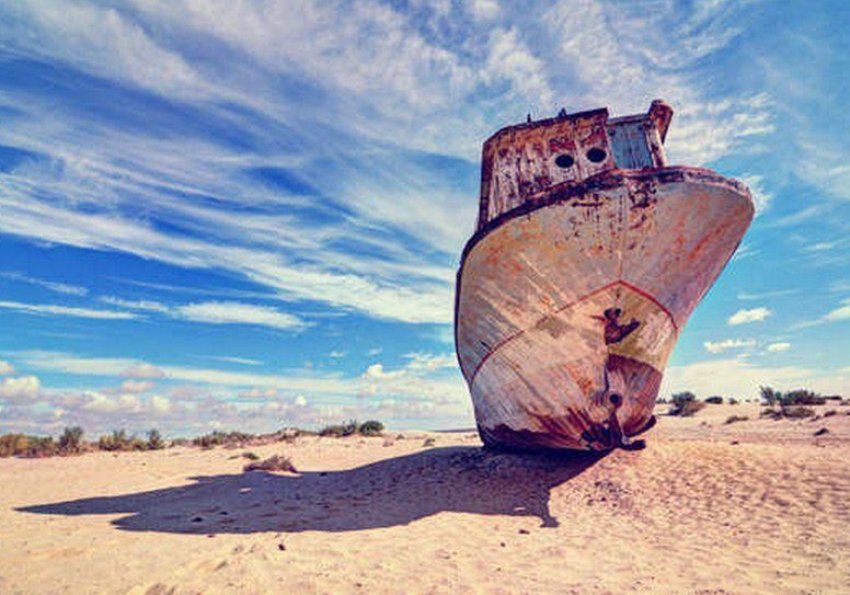 Когда-то Аральское море было четвертым крупнейшим озером в мире, в настоящее время на его месте простирается пустыня.