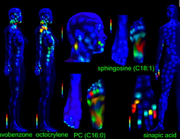 После этого ученые составили трехмерные модели тела, на которых показали распределение химических веществ и бактерий.