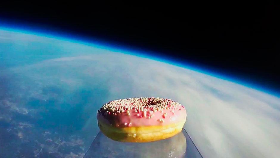 Запущенный в космос пончик, сделанный, как водится, из обыкновенного теста, и закрепленный к специальному зонду, достиг высоты в 32 километра.