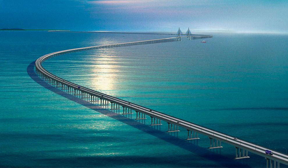 Этот мост примерно на четыре километра длиннее, чем мост Lake Pontchartrain Causeway, который до этого был самым длинным мостом.