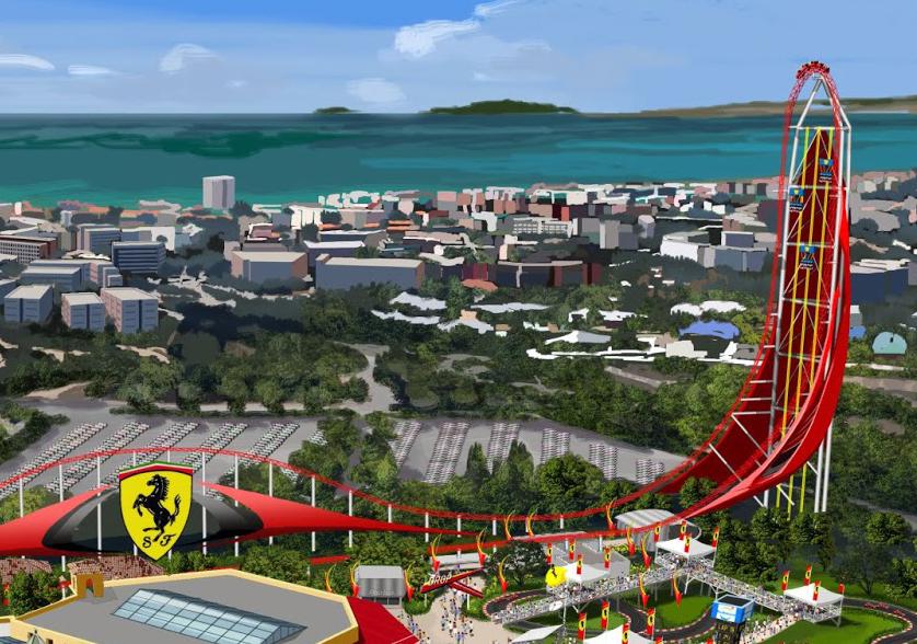 Ferrari Land сможет похвастаться такими увеселительными заведениями как: огромная “Башня свободного падения”, аквапарк, американские горки, тематический 5-звездочный отель, значительное число ресторанов и тд. Рядом с недостроенным парком уже находится шатер легендарного цирка “Дю Солей”.