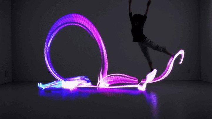 Благодаря датчикам движения, носители данной обуви могут демонстрировать синхронное взаимодействие своих движений с светом и звуком. Краудфандинг-кампания на IndieGoGo существенно превысила ожидания разработчиков.Первые продажи ожидаются в начале декабря этого года.