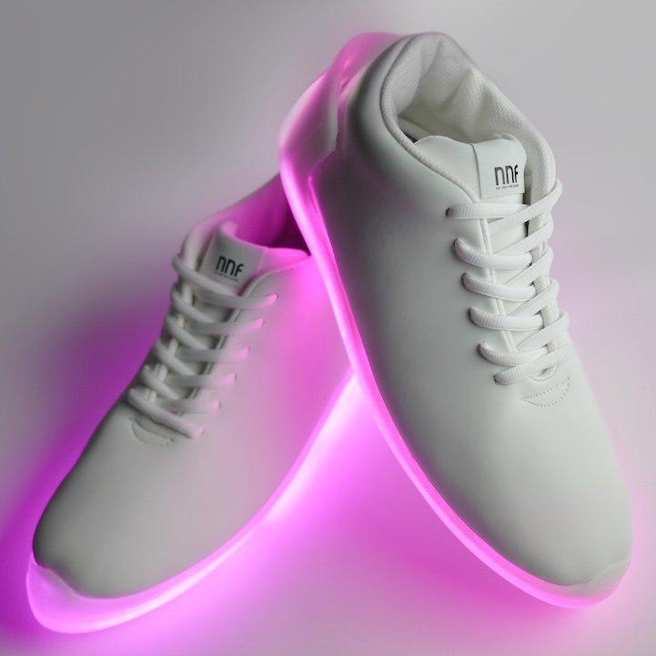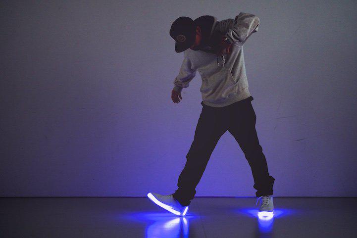 Подошва танцевальных кроссовок содержит аудио-визуальный контроллер, а также около сотни светодиодов разного цвета. Настройка и их управление доступно посредством простого приложения в вашем смартфоне.