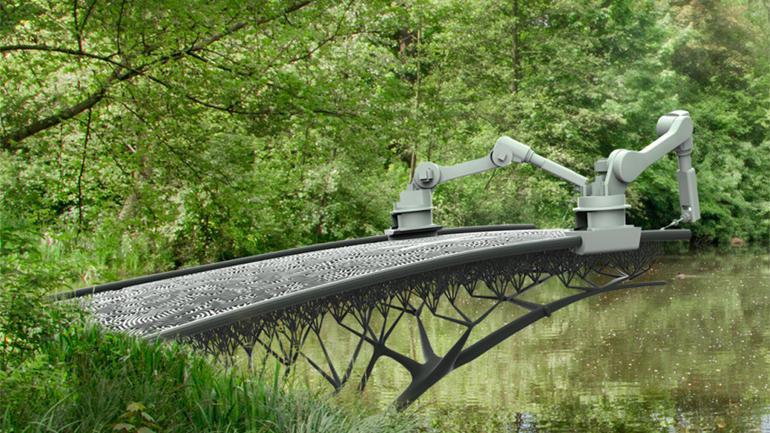 Поскольку мост планируется печатать прямо над водой, принтерам будет необходимо создавать устойчивую конструкцию, в реальном времени организовывая себе поддержку и передвигаясь всё дальше от берега.