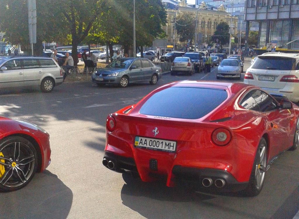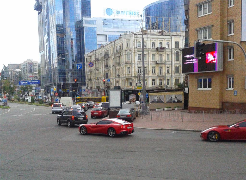 Сегодня в центре внимания мини-кортеж из двух автомобилей Феррари, разъезжающих по столице Украины Киеву.