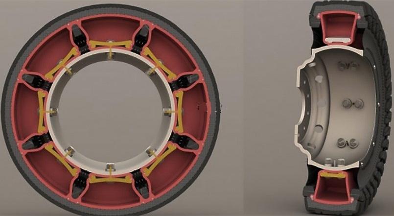 Технология основывается на совсем нетрадиционном узле ступицы колеса. У безвоздушной шины внутренняя втулка сделана из твердого материала, и именно она будет крепиться к оси.