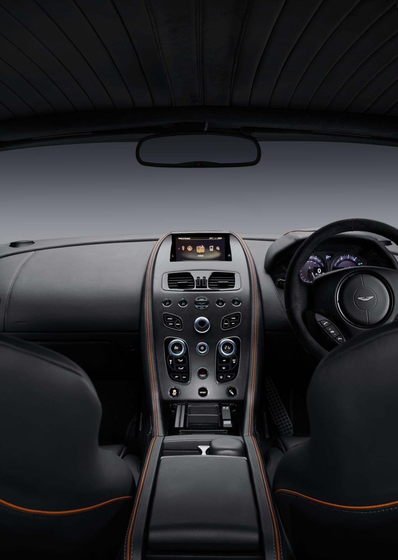 В интерьере Aston Martin DB9 GT стоит отметить появление рулевого колеса в стиле суперкара One-77, обтянутого алькантарой. Кроме того, у покупателей будут широкие возможности индивидуализации вставок на передней панели.