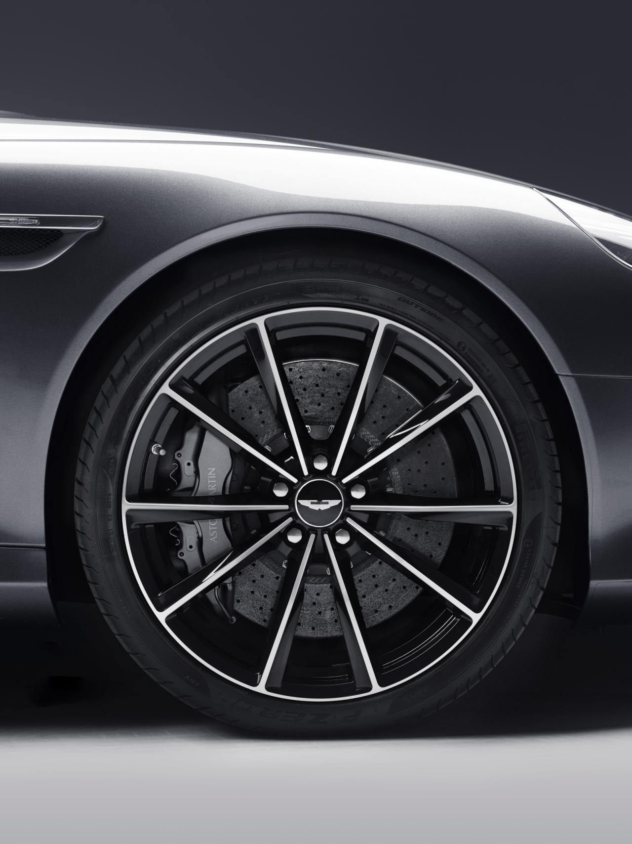 Отличить внешне самый мощный Aston Martin DB9 можно по сплиттеру и диффузору, окрашенным в черный цвет, чуть другим фарам и задним фонарям, а также черным тормозным суппортам и 20-дюймовым легкосплавным дискам.
