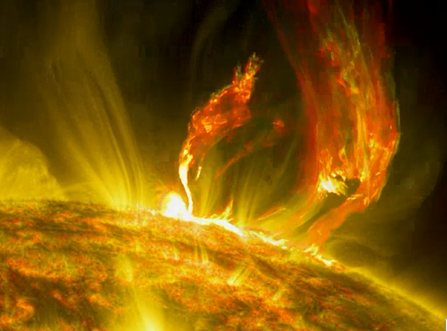 Солнечная вспышка — это процесс выделения энергии (световой, тепловой и кинетической), охватывающий все слои атмосферы светила. При вспышках она выделяется всего за несколько минут.