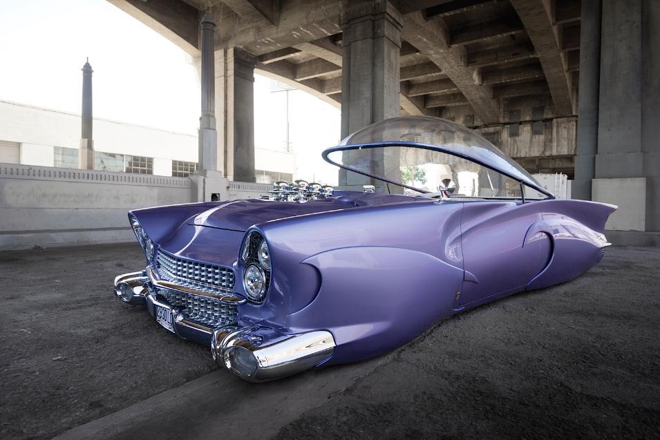 По словам мастера модификаций, футуристический дизайн экстерьера и интерьера придумывался им на ходу. Огромная откидная крыша в виде двойного пузыря (бабблтоп), необычный руль, напоминающий штурвал самолета, и нечто, функционально заменяющее приборную панель со спидометром - все это настолько фантастично и вычурно, что автомобиль по праву заслуживает звание самоходного памятника современного искусства модификаций.
