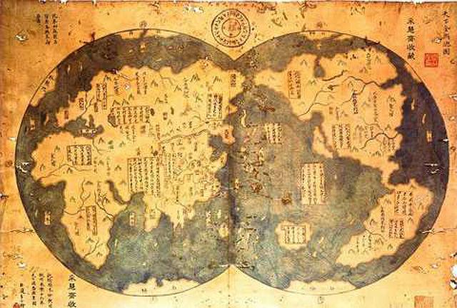 Документ якобы является копией, сделанной в XVIII веке c карты, нарисованной в 1418-м году китайским адмиралом Чжэн Хэ. На карту нанесены контуры Нового Света. Этот документ доказывает то, что китайские моряки побывали в Западном полушарии на семь десятилетий раньше Колумба, и это лишь один из аргументов, который в пользу своей теории приводит историк Гэвин Мензис в своей новой книге «Кто открыл Америку?».