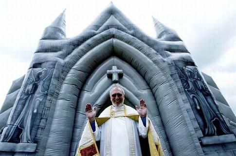 Но вот проект, который разработал британец Майкл Джилл, выделяется среди всех прочих. Он придумал надувную церковь, которую можно легко возвести в считанные минуты в любом уголке мира.