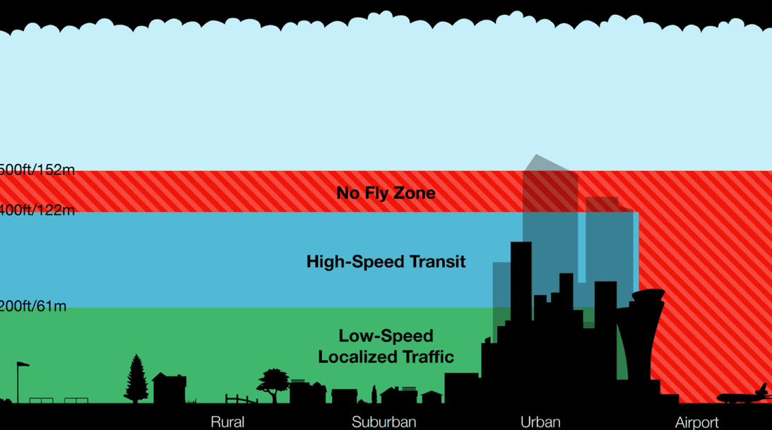 Воздушное пространство над сельской местностью, крупными городами и их пригородами ИТ-компания предложила разделить на три условных слоя.
